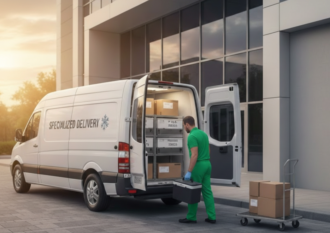 - Refrigerated transport (2–8°C, frozen, ambient)